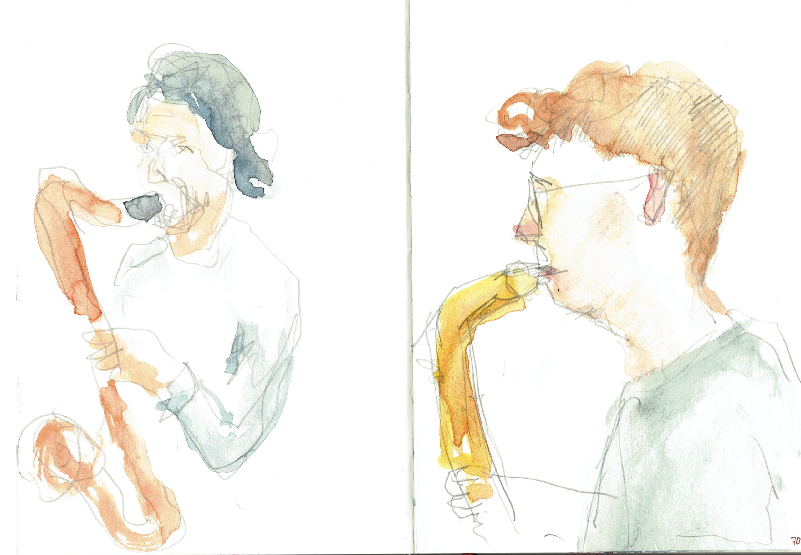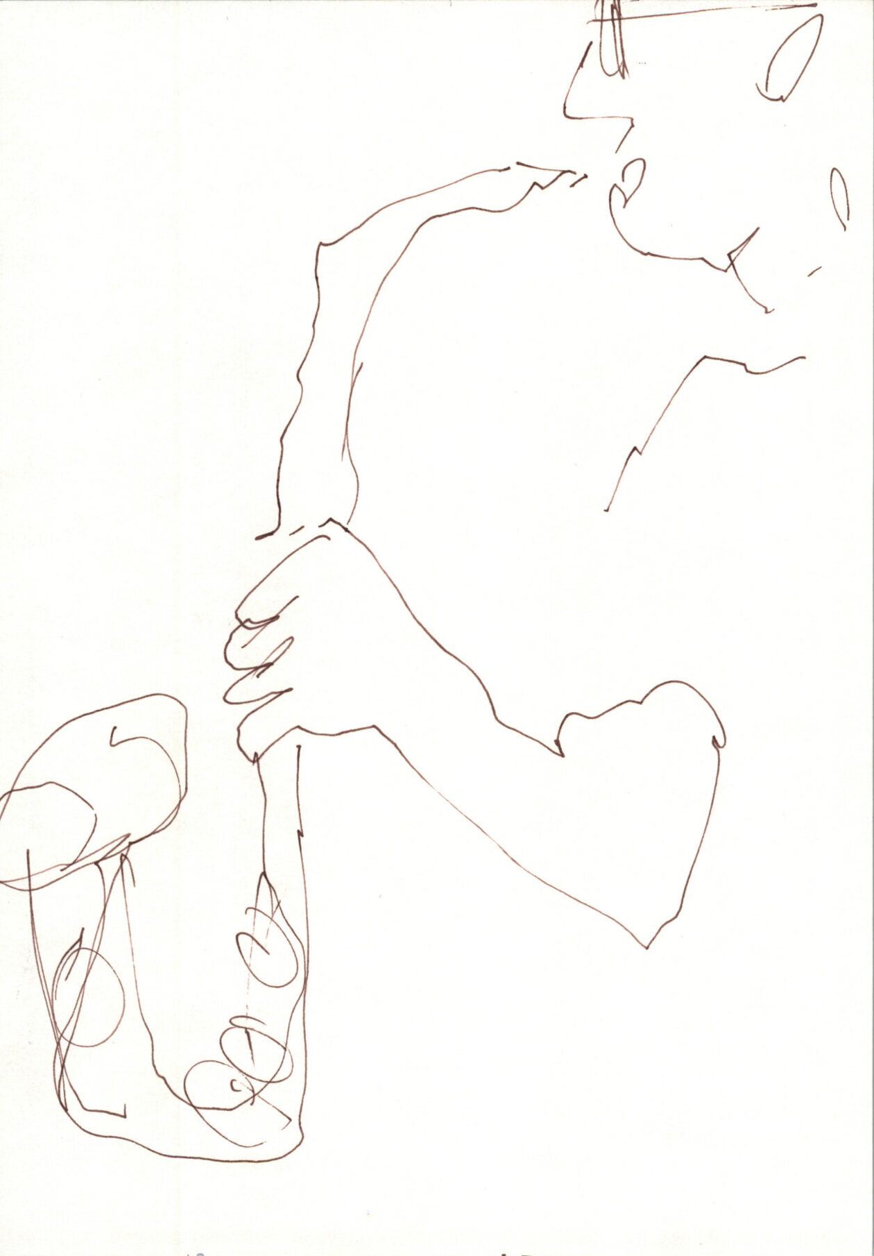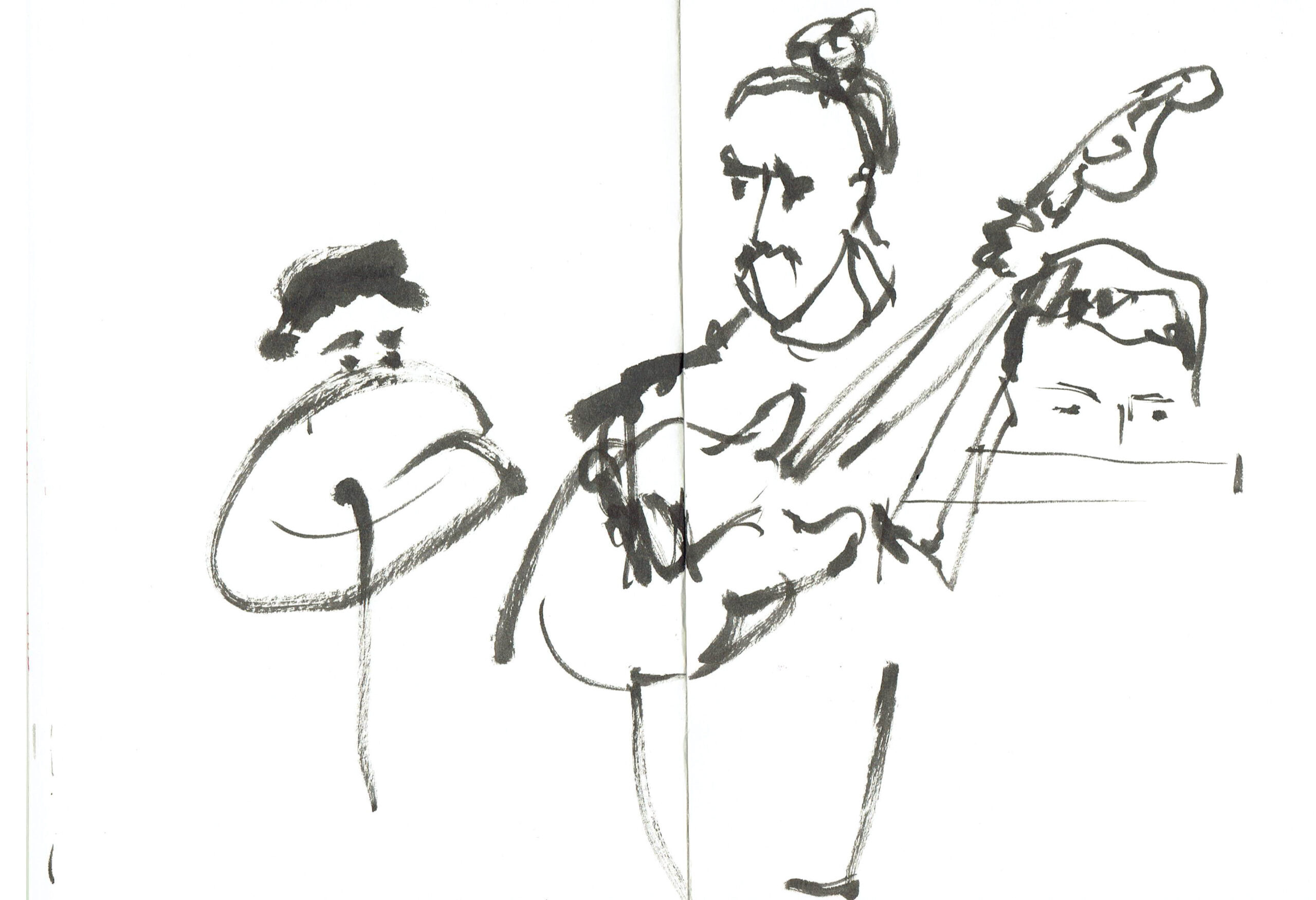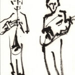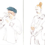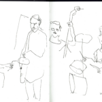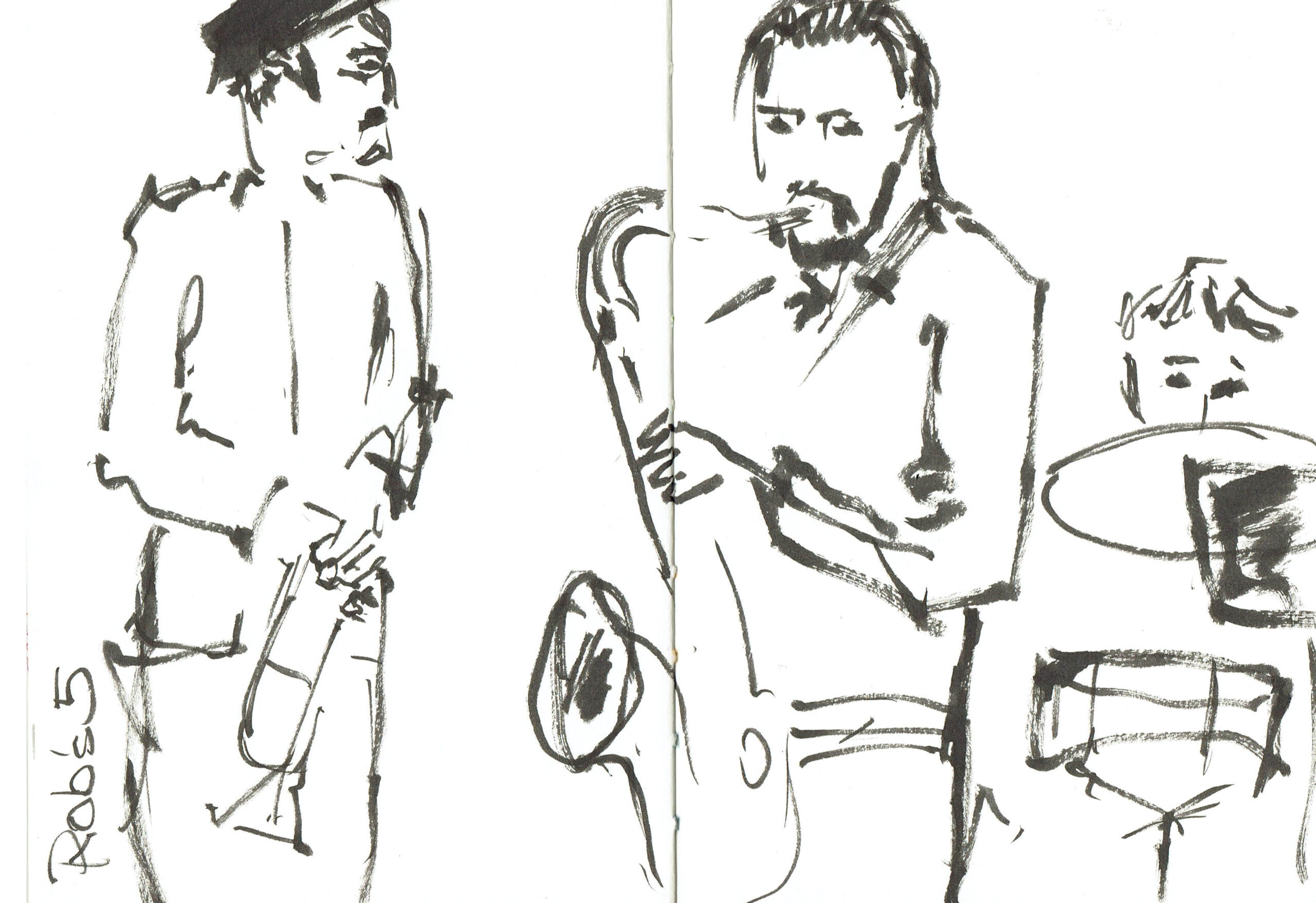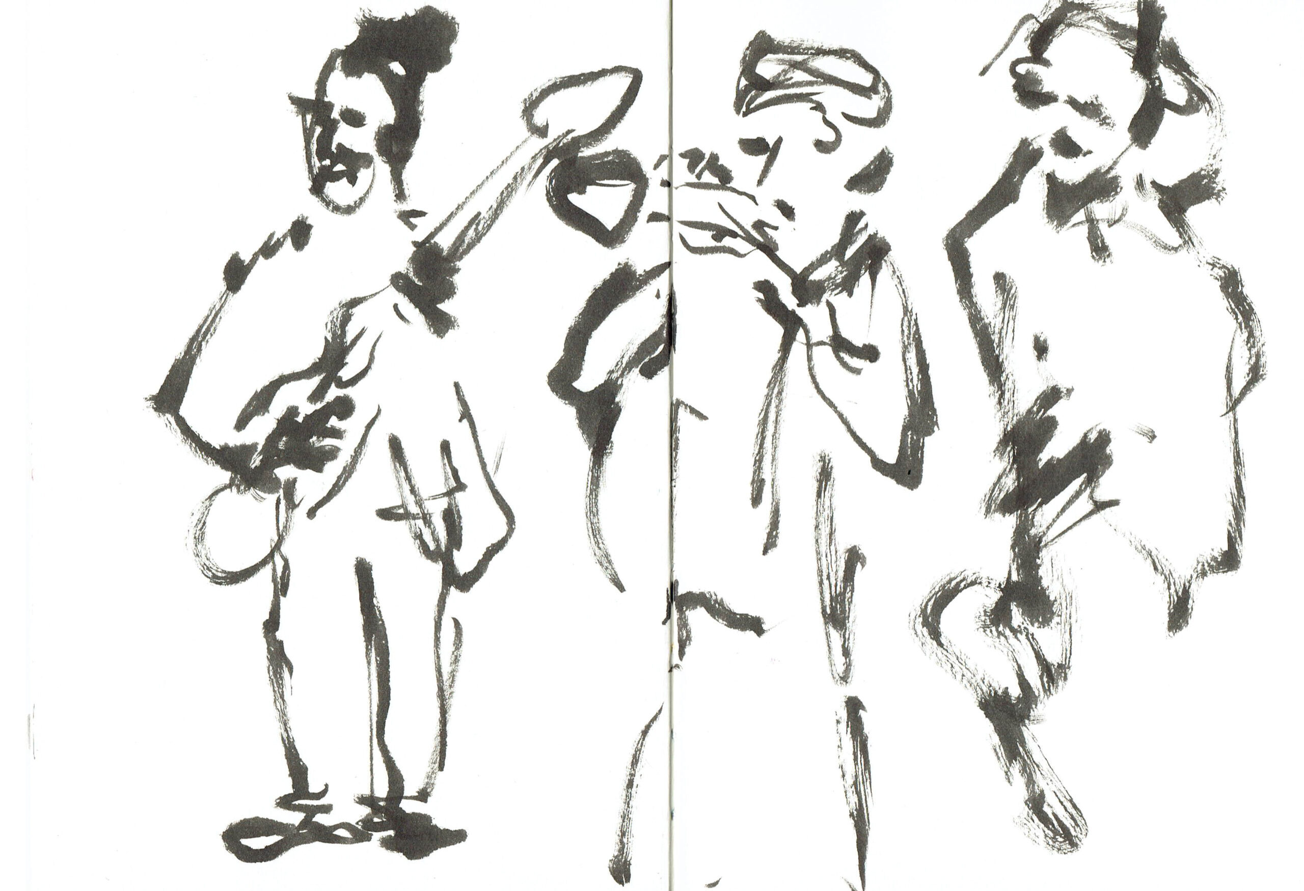 Die Zeichnungen entstehen live während Konzerten oder Jam-Sessions. Ich zeichne und höre gleichzeitig die Musik. Viele Zeichnungen sind ‚lediglich‘ Zwischenschritte. Der Prozess ist wichtig, ich improvisiere und experimentiere, ich spiele. Die Ergebnisse dokumentiere ich hier.