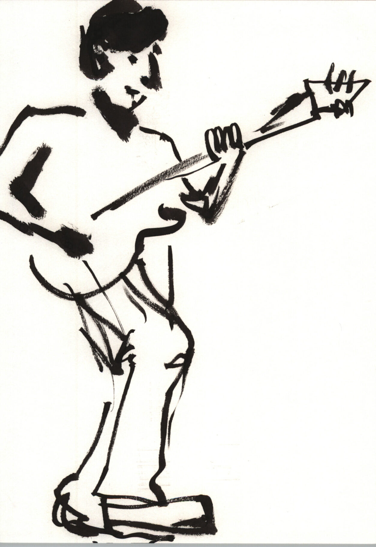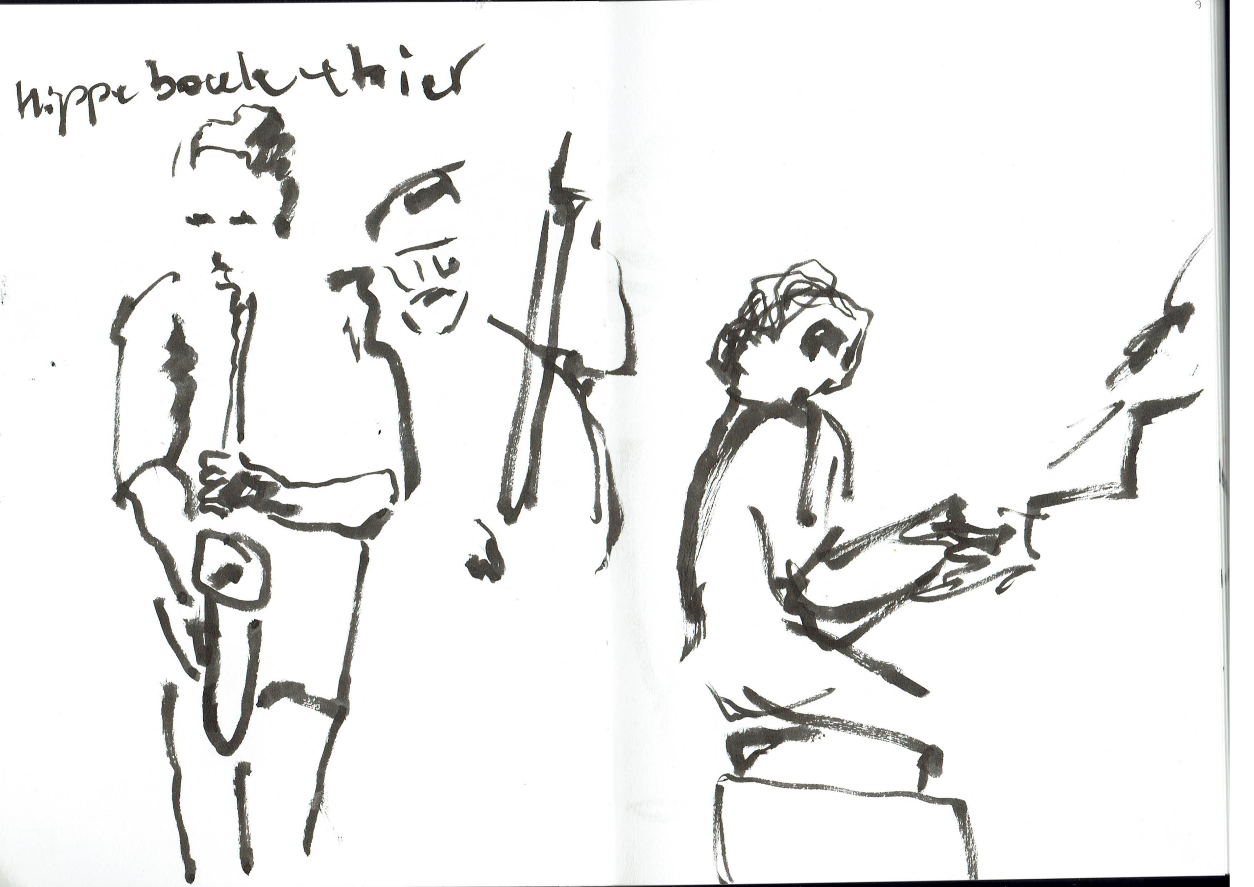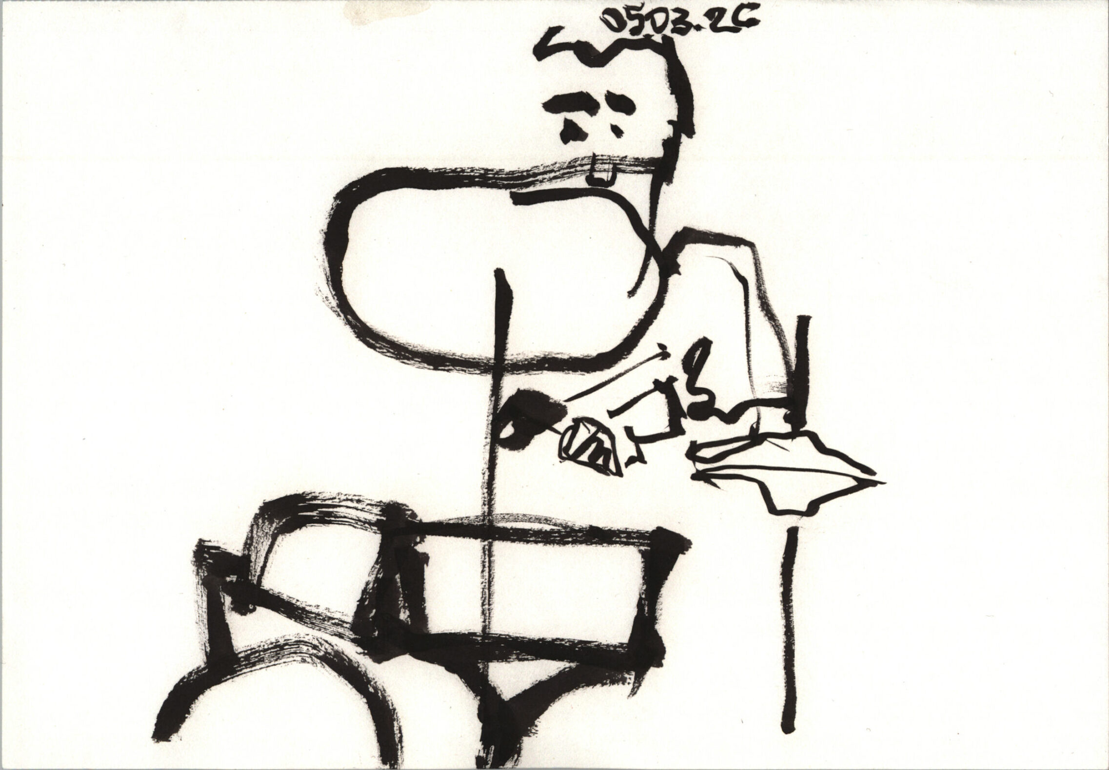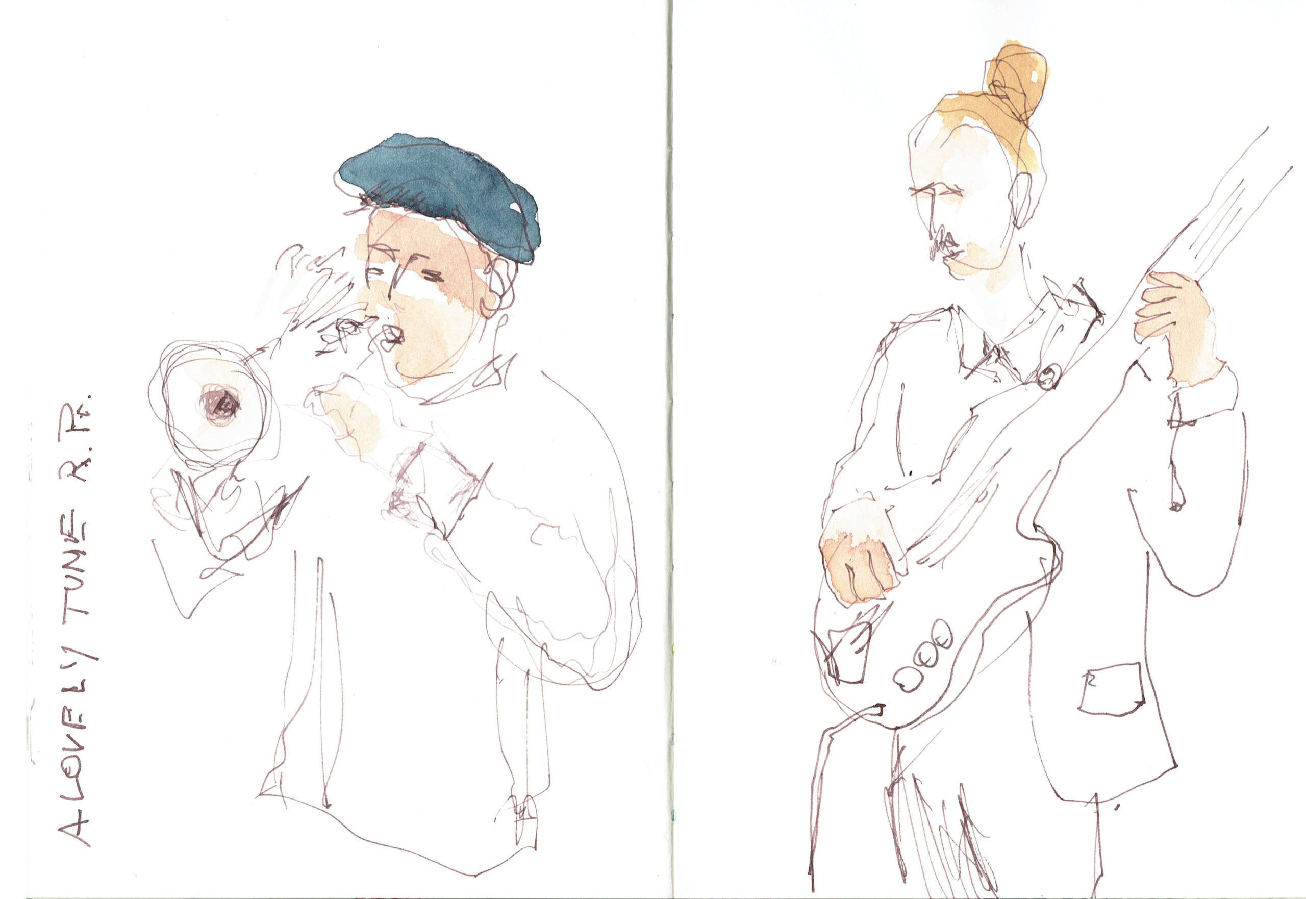 Die Zeichnungen entstehen live während Konzerten oder Jam-Sessions. Ich zeichne und höre gleichzeitig die Musik. Viele Zeichnungen sind ‚lediglich‘ Zwischenschritte. Der Prozess ist wichtig, ich improvisiere und experimentiere, ich spiele. Die Ergebnisse dokumentiere ich hier.