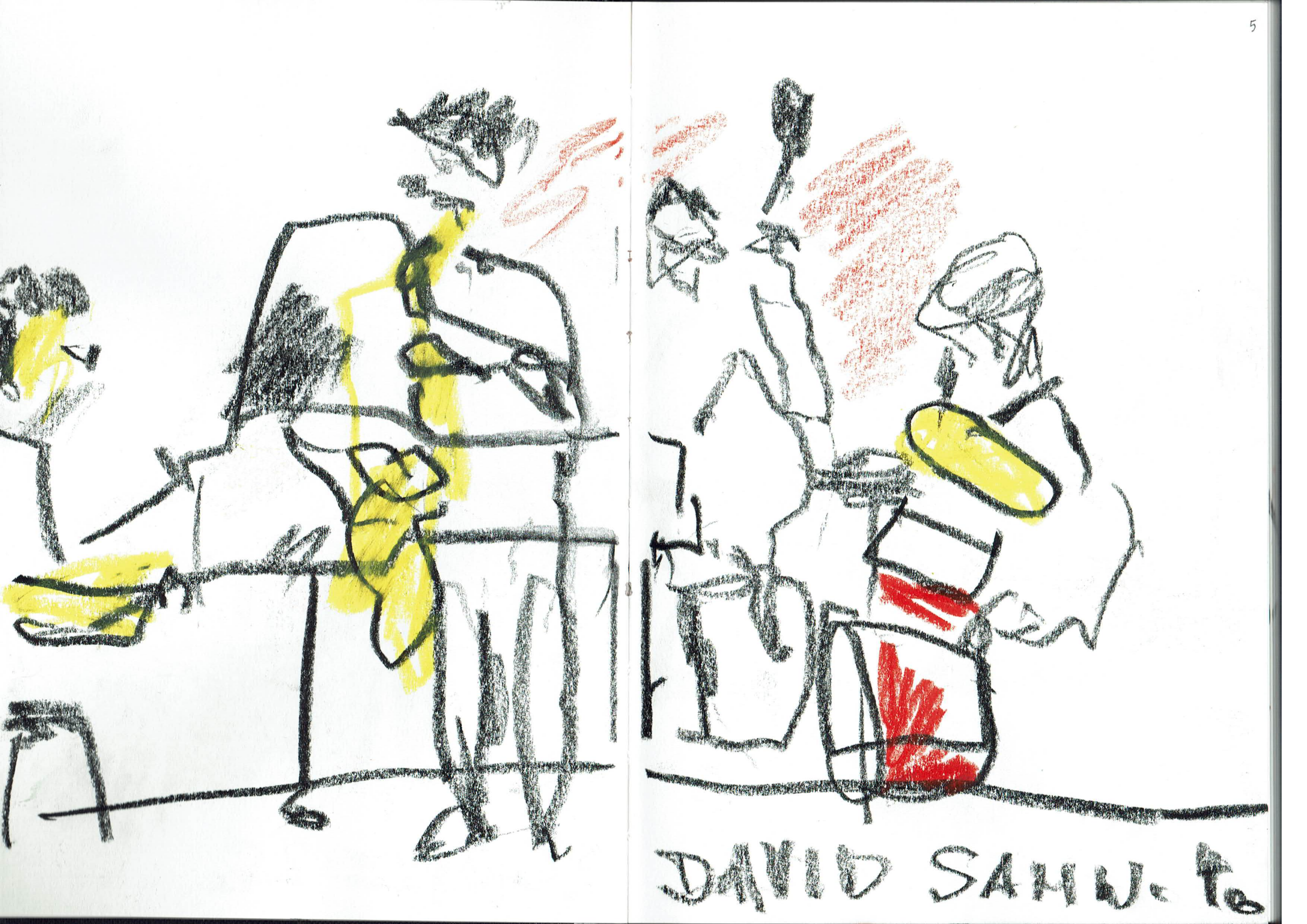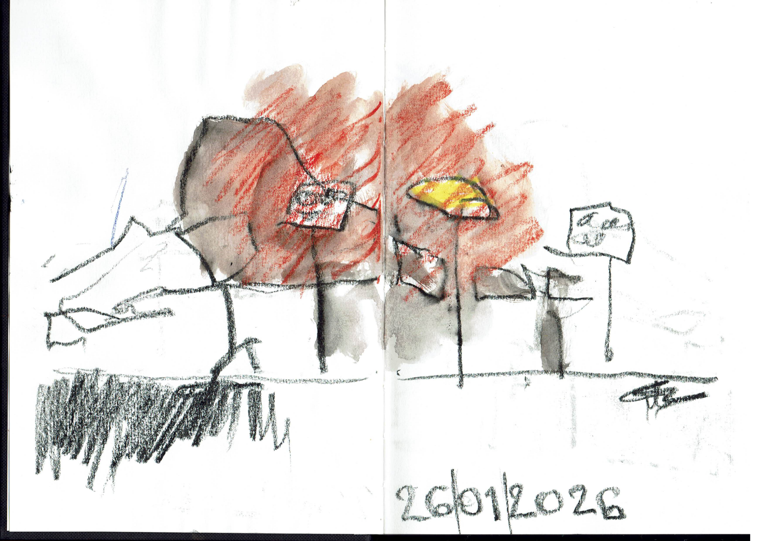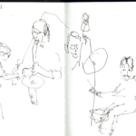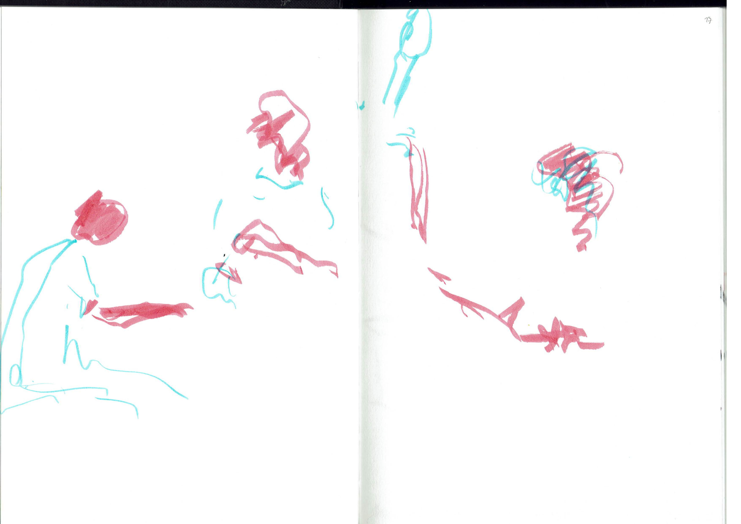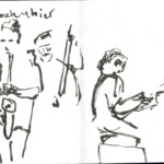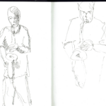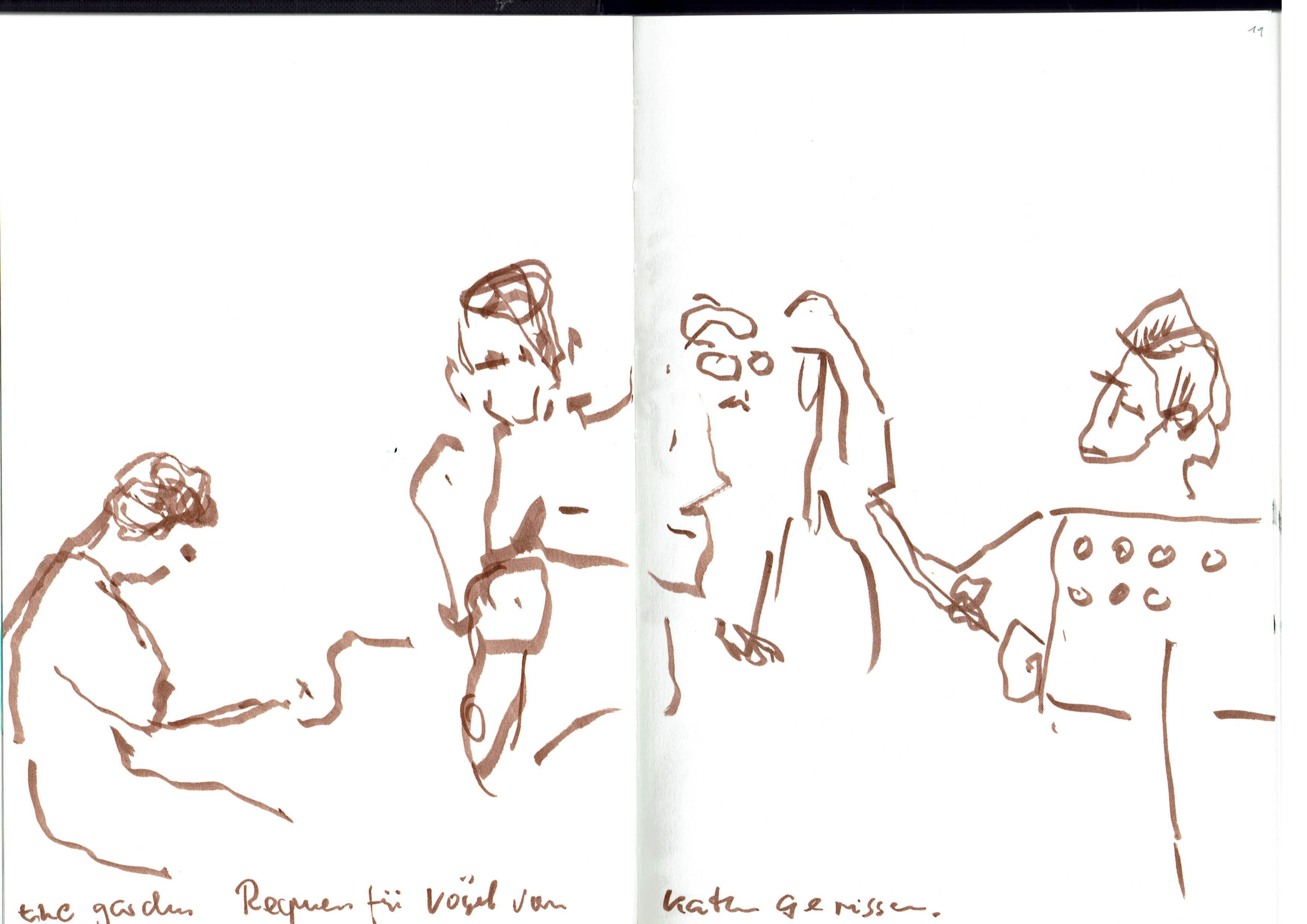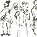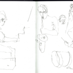 Die Zeichnungen entstehen live während Konzerten oder Jam-Sessions. Ich zeichne und höre gleichzeitig die Musik. Viele Zeichnungen sind ‚lediglich‘ Zwischenschritte. Der Prozess ist wichtig, ich improvisiere und experimentiere, ich spiele. Die Ergebnisse dokumentiere ich hier.