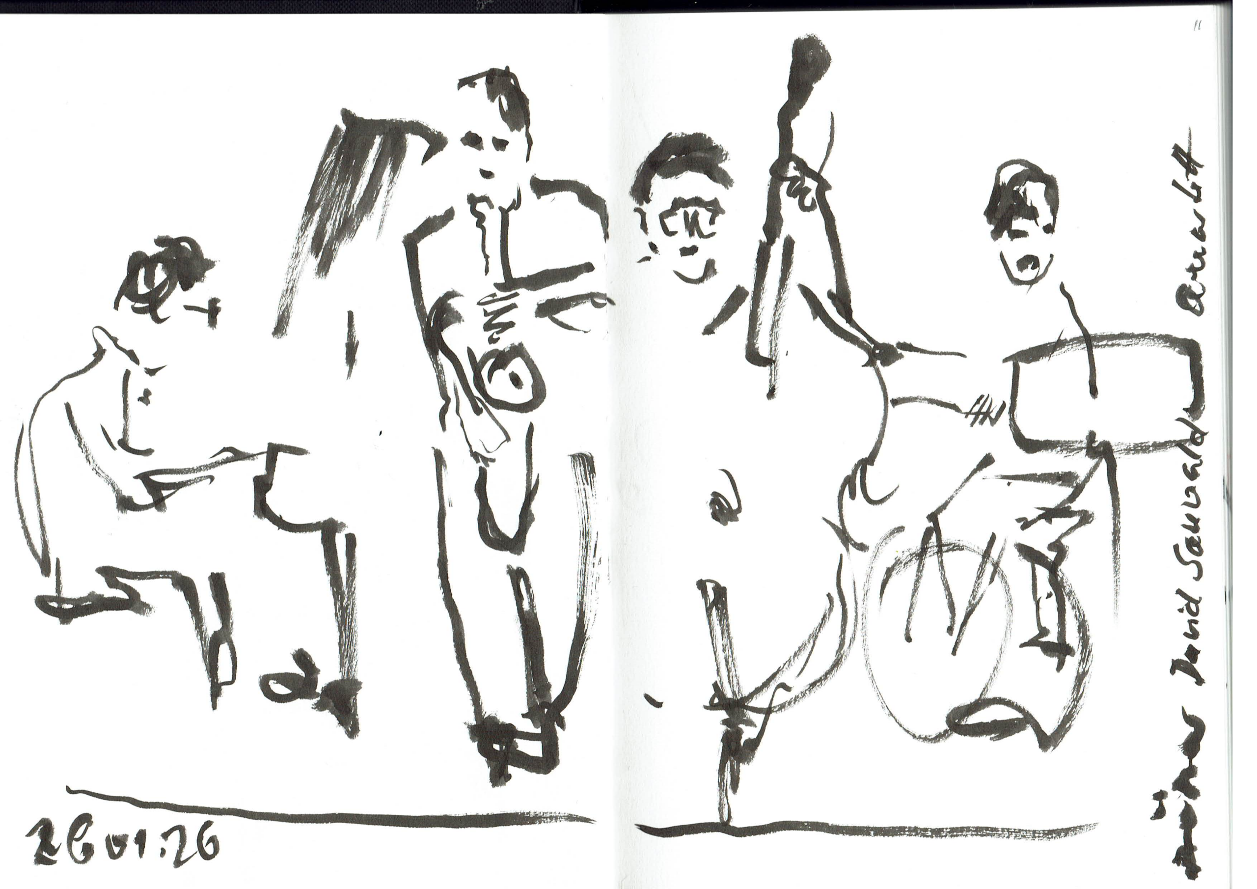 am Montag Abend in der Alten Feuerwache Mannheim. Das Master- Abschlussprüfungs-Konzert des David Sanwald Quartett’s. Das Konzert war hervorragend, die Musik, alles selbst komponiert oder arrangiert war sehr interessant und die Musiker sind sowieso alle gut. Stimmung im gut besuchten Saal war entsprechend hervorragend.