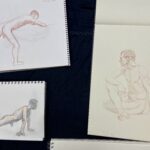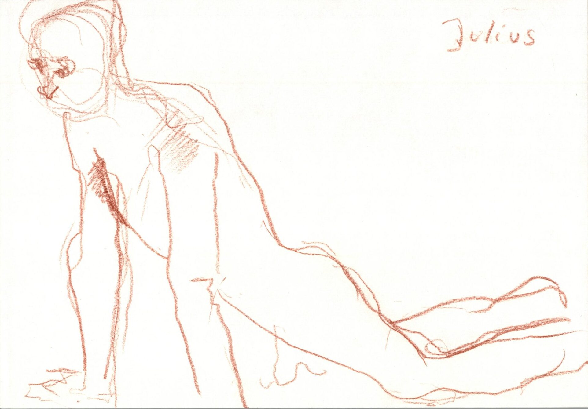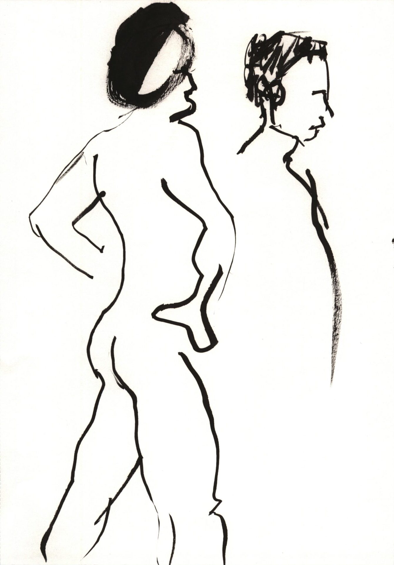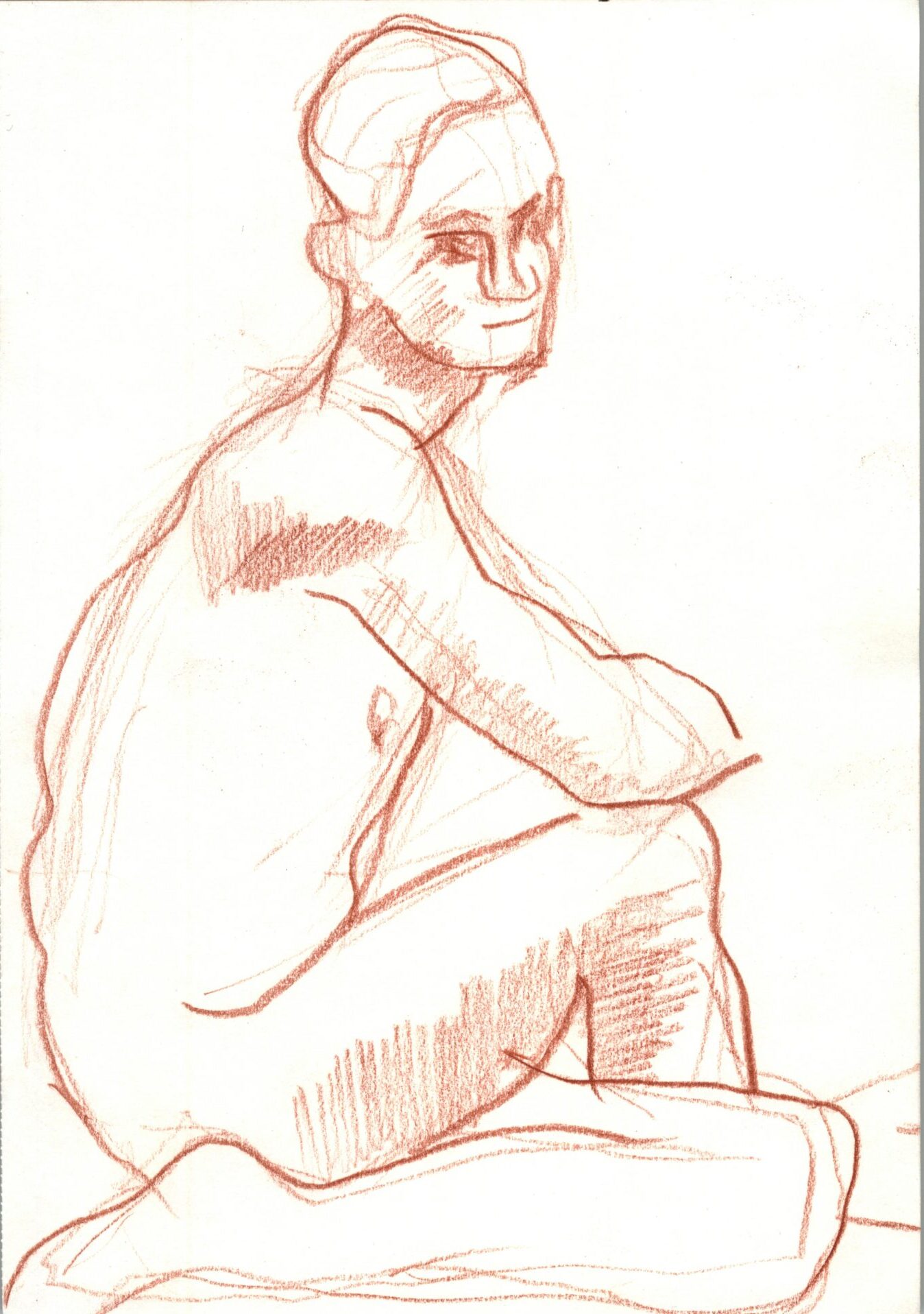 Hier ein paar von meinen Zeichnungen in Rötel und Tusche: