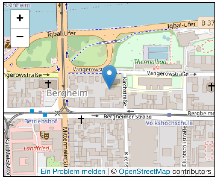 Auf der Bergheimer Strasse Richtung Autobahn fahrend biegst Du nach rechts in die Kirchstraße Richtung Neckar ein. Du findest uns im Hof, rechts neben dem Gebäude der Musik und Singschule ganz hinten links, kurz vor dem Garten.